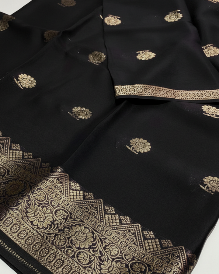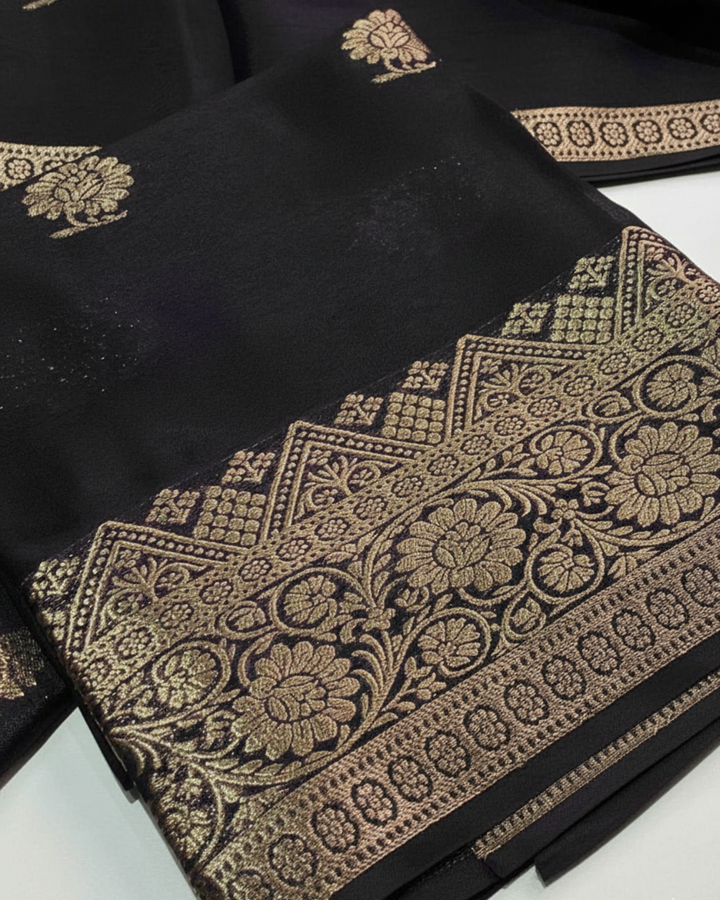 The saree comes with a running unstitched blouse piece which is attached to the saree. We try to stay as accurate as possible to the original colors with pictures . However, due to different screen calibrations and photography , colors may vary slightly from pictures. Since the products is machine made there might be slight unevenness and irregularities in the weave pattern
